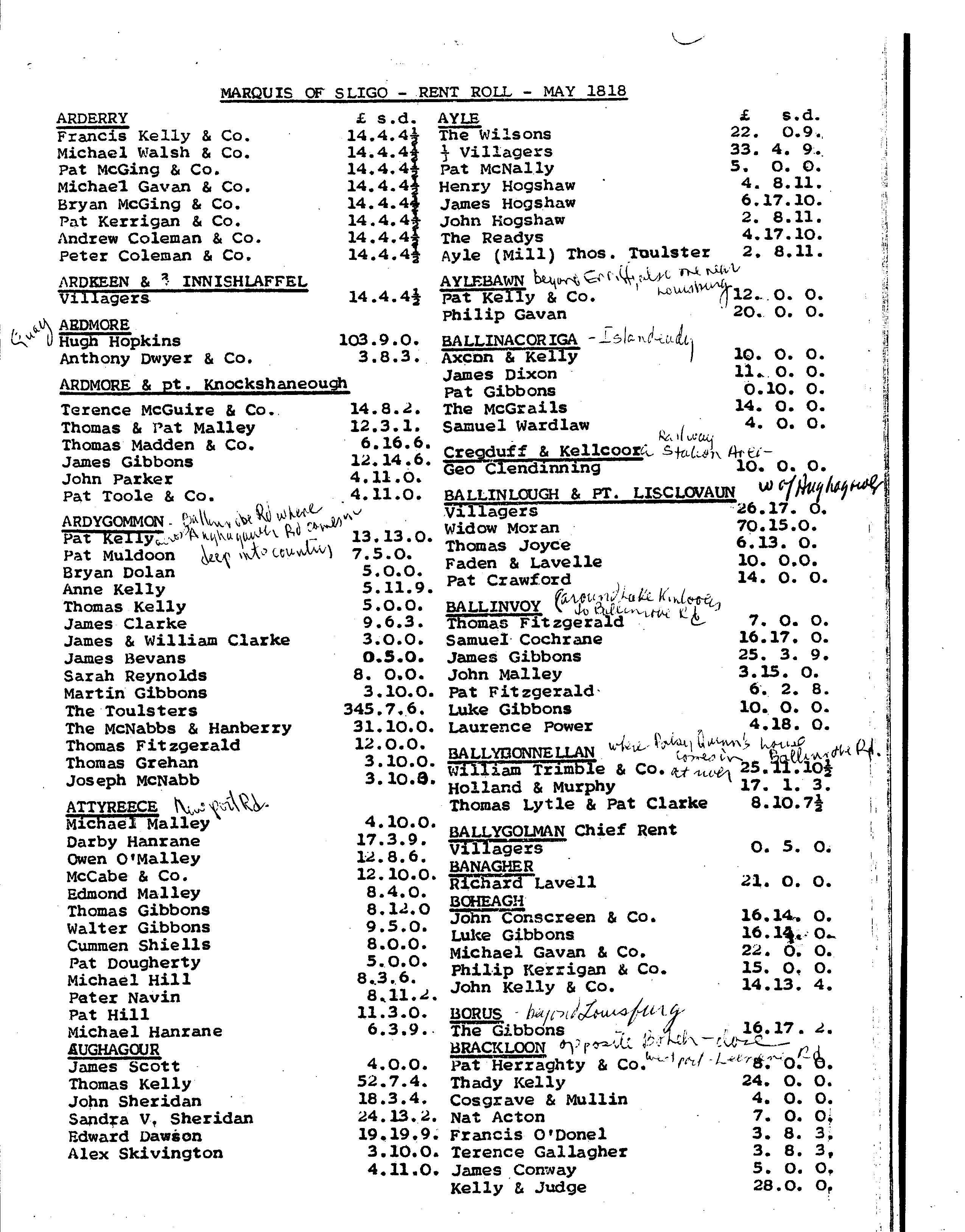 May 1818 Marquis of Sligo Rent Rolls
