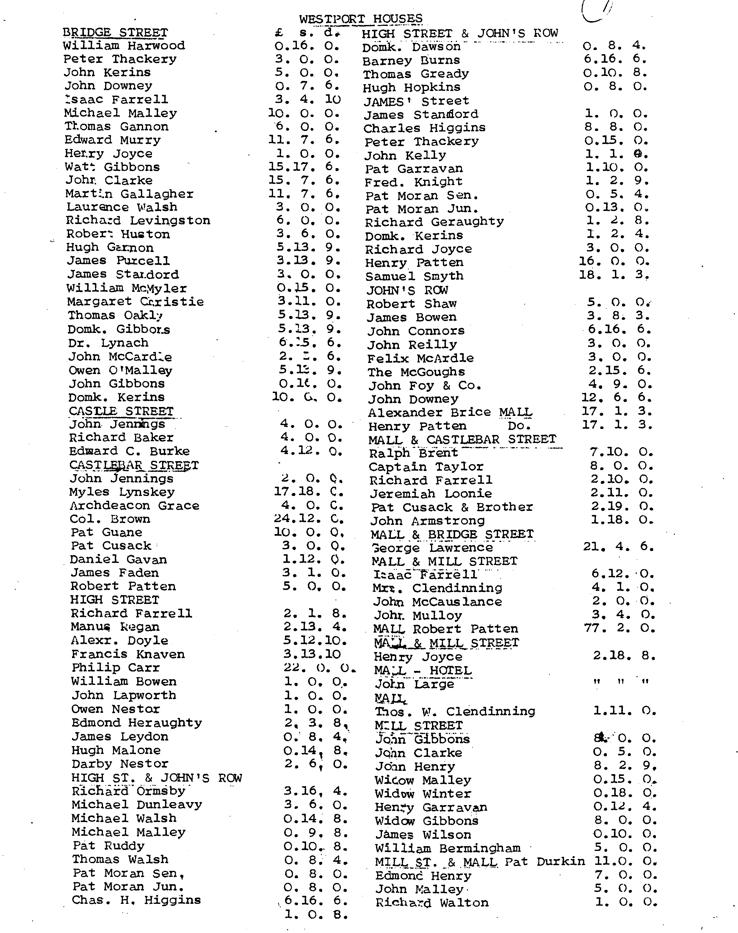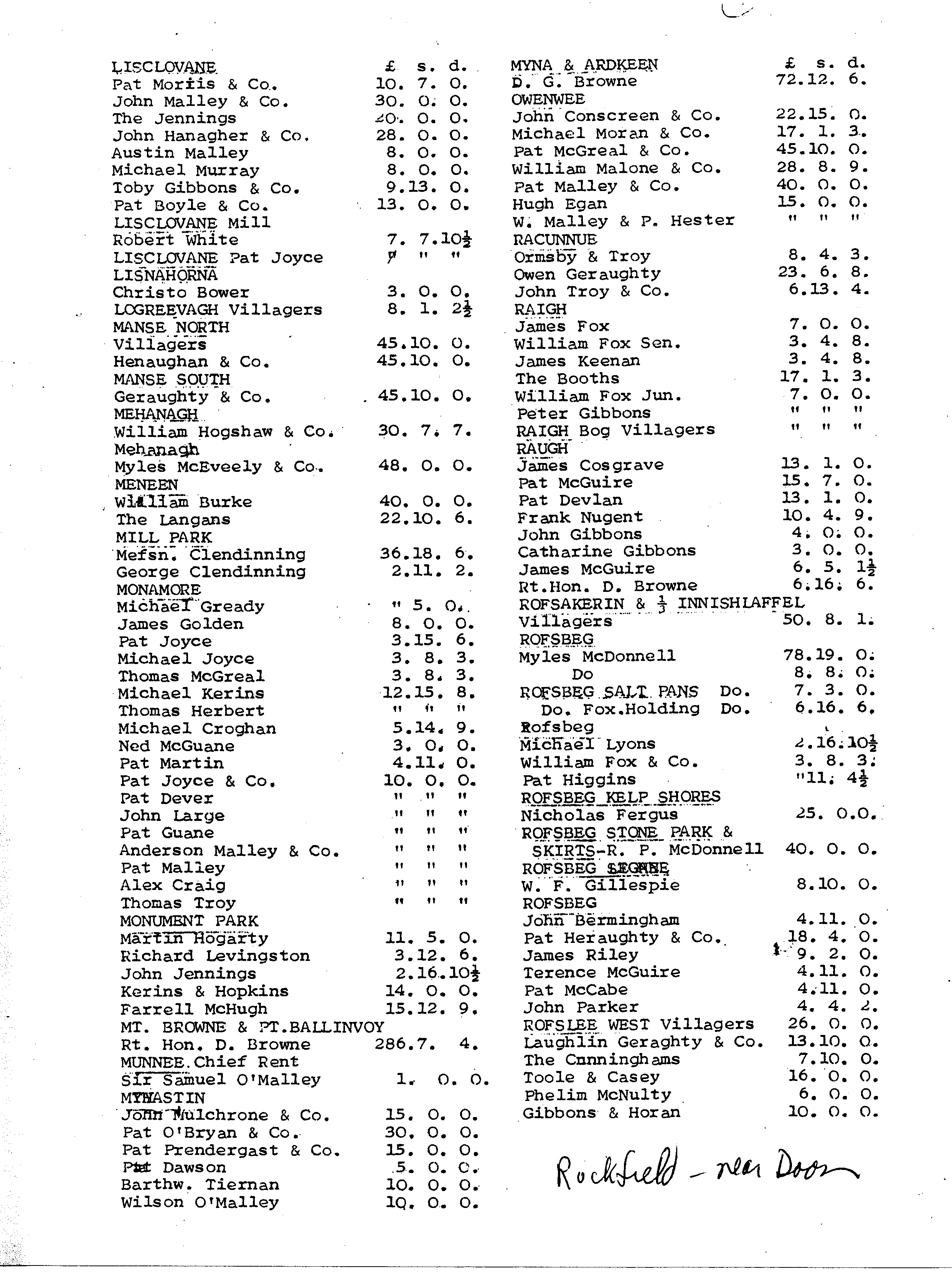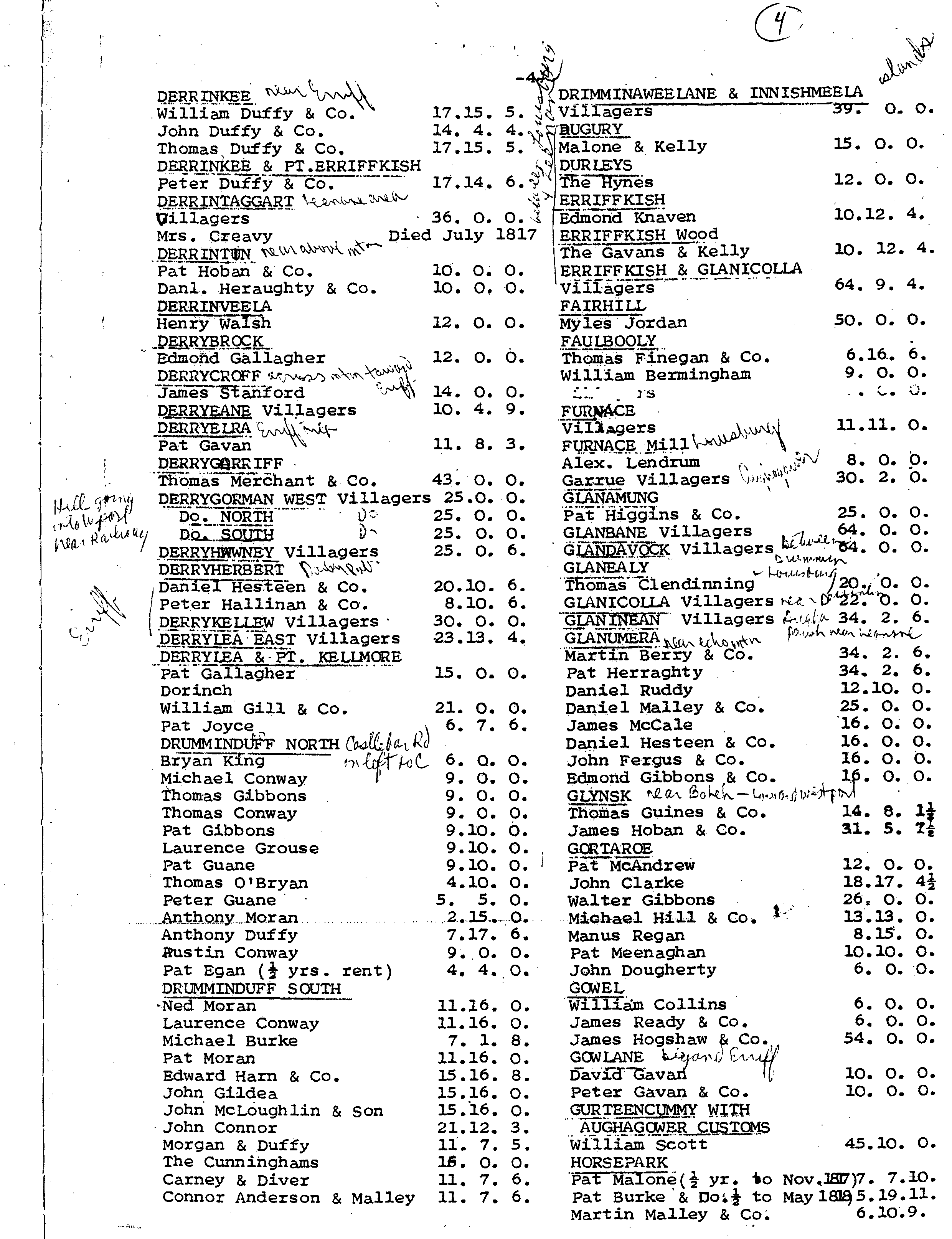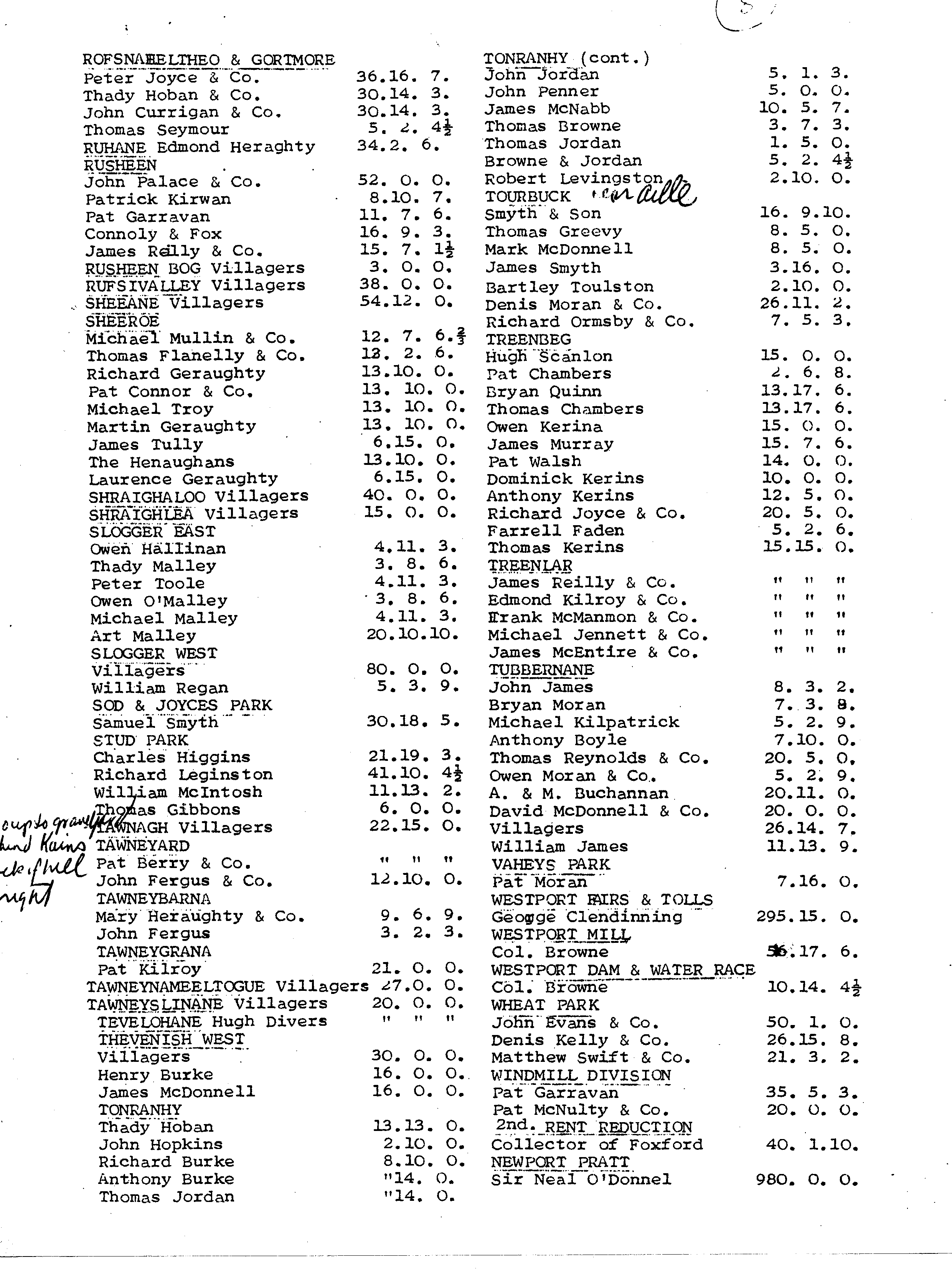 Mary Chervenak sent me a copy of these rent rolls; I scanned them and they are in order, 1st page to last. We have McGings on the 1st page in Arderry. Interestingly enough, there were no McGings listed in Westport at any of the places that they later occupied.
